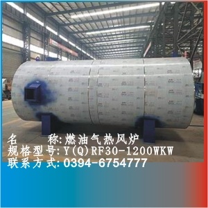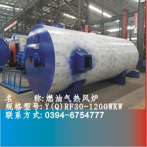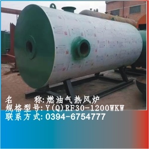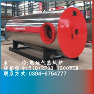间接式燃油气热风炉是一种以油和气体为燃料,以空气为载热体,通过风机强制循环,经过换热器换热、空气过滤器过滤后,输出干净热风的供暖设备。被加热的新鲜空气与烟气是隔离进行热交换的,加热的高温空气,清洁,*污染,专为粮食加工、汽车喷漆烘干、养殖场、生产车间提供高温热风源,以及为化工、建材、食品、造纸等行业提供高温清洁的热风源。 该锅炉特点:采用全钢板多层套筒式结构一体化机组,其炉心为燃烧室,四周为环行换热器,空气和烟气均是多回程,各行其道进行换热。为了提高热效率,采用多头螺旋槽片换热技术和紊流原理,减薄层流厚度,使空气和烟气在行进中不断交换旋向,大大强化了换热效果。主要适用于被干燥物料不允许被污染,或应用于温度较低的热敏性物料干燥。如:奶粉、制药、合成树脂、精细化工等。此种加热装置,即是将蒸气、导热油、烟道气等做载体,通过多种形式的热交换器来加热空气。