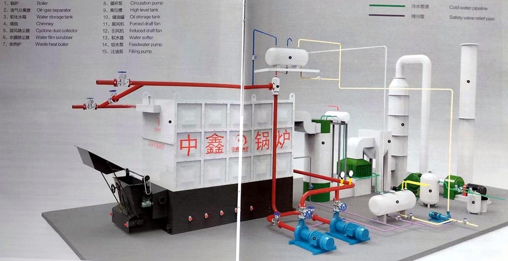 ③受热面布置合理,导热油使用寿命长。烟气排放符合国家环境保护标准GB13271-2001《锅炉大气污染排放标准》的要求。
